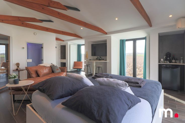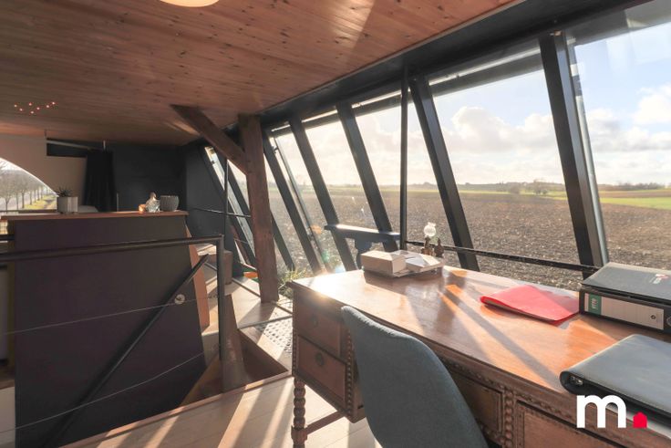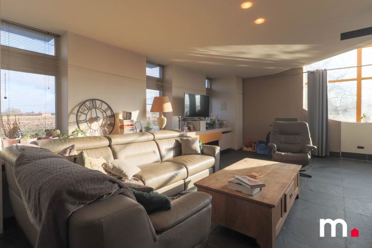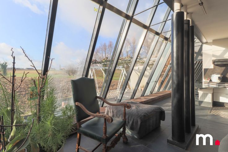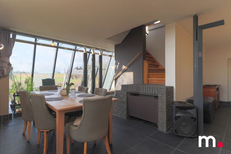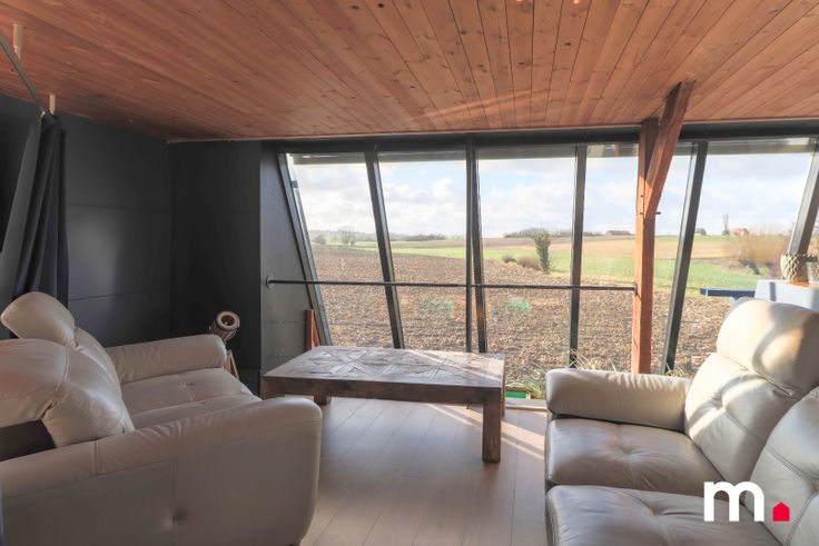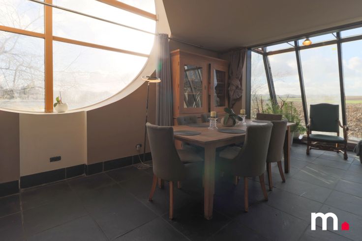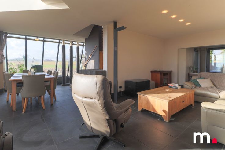 Gezellige zithoek met grote ramen met vrij zicht op de velden.