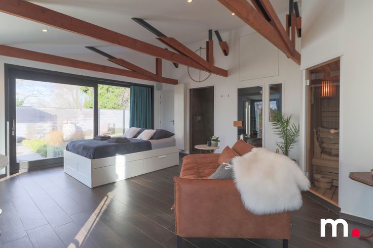 Nieuw bijgebouw met aparte toegang is recent volledig ingericht als gastenverblijf of mogelijkheid voor co-housing.