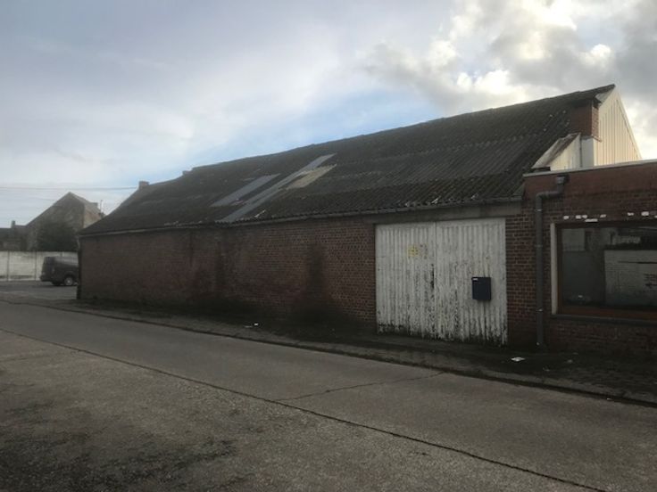 Entrepôt couvert +/- 225 m2 à rénover sur superficie total de +/- 25 ares. Proximité autoroute. Zone économique et industrielle. A rénover (sans électricité ni eau).