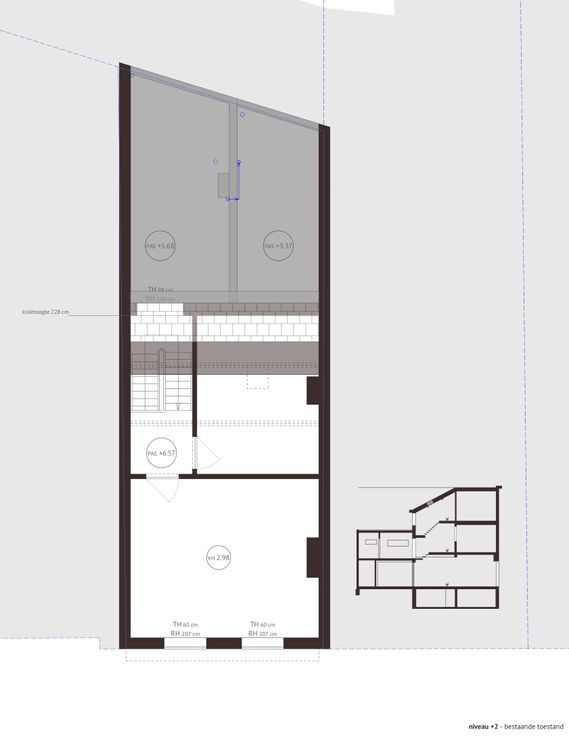 - Tweede verdieping met grote en kleine slaapkamer (respectievelijk 20m2 en 13m2)
