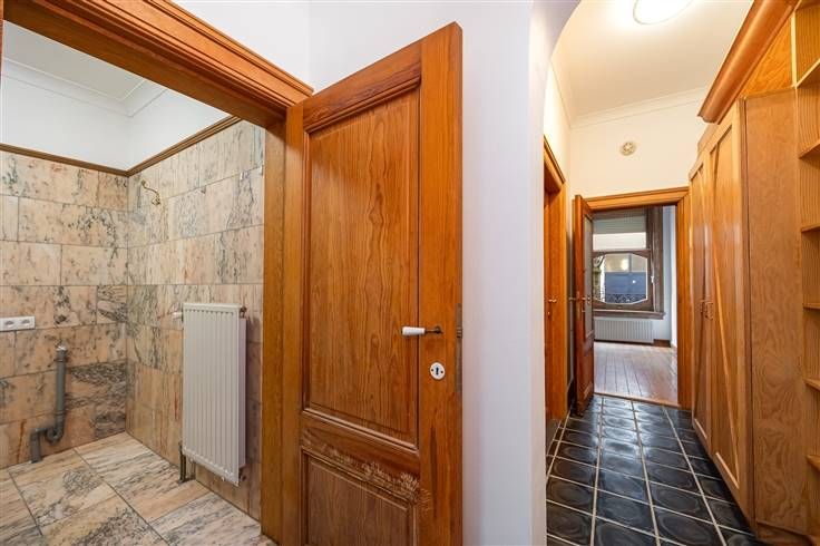 Gelijkvloers appartement met gezellige stadstuin in de gegeerde Sint-Andrieswijk Je komt het appartement zelf binnen in de grote inkomhal met ruime vestiairekast, die alle ruimtes met mekaar verbindt. De slaapkamer zit vooraan, heeft een verzorgde plankenvloer én een prachtig houten raamkozijn dat de originele balustrade mooi omkadert. Dankzij de rolluiken slaap je hier rustig en zonder enige inkijk. Weer in de hal heb je net voorbij het sierboogje rechts van je de badkamer, die betegeld is met een marmertegel en waarin je een ligbad met douchekop, aansluiting voor een was-droogcombinatie lavabo met spiegelkastje en een toilet hebt. Door het glas van de robuuste houten keukendeur kijk je de halfopen, rustieke keuken binnen, met degrote leefruimte erachter. De zwarte tegels van de hal lopen door in de keuken en ook hier blijken de volhouten kastdeurtjes daar goed bij te passen, net zoals het natuurstenen werkblad en de betegelde spatwand. Je hebt hier een gasfornuis, dampkap, spoelbak en heel wat kasten. De leefruimte baadt in het licht dankzij de kamerbrede schuiframen die uitgeven op dé troef van dit appartement: de gezellige stadstuin van 24 m². De gekaleide witte muren zorgen voor extra cachet en mits enkele welgeplaatste outdoor meubeltjes en sfeervolle buitenverlichting, creëer je hier in geen tijd een unieke buitenplek midden in ’t stad. Voor meer info: