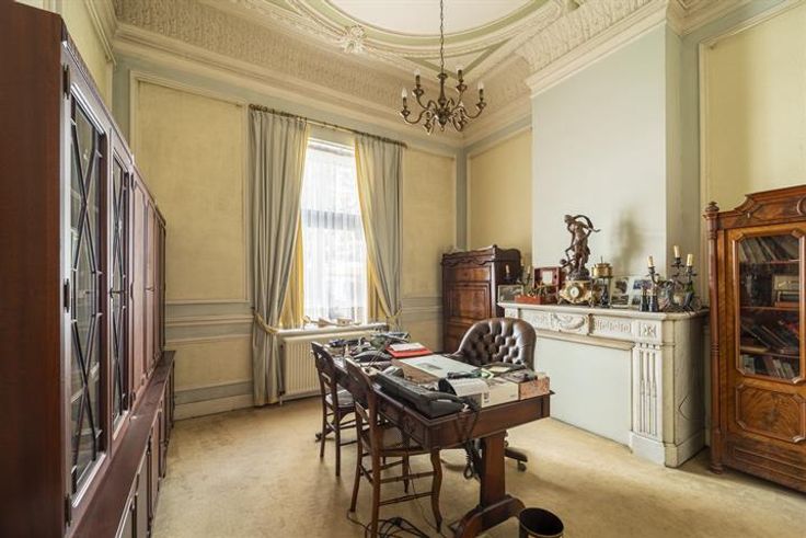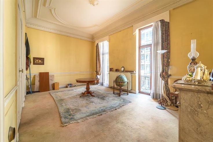 Prachtig herenhuis te koop in Schaarbeek. Een renovatieproject. Het gebouw van 425m² bestaat uit een gelijkvloers bestemd als kantoor en drie residentiële verdiepingen. De oprit leidt naar een binnenplaats en een achtergebouw.