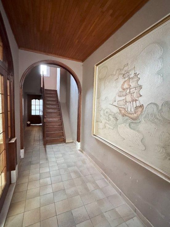 Deze centraal gelegen, te renoveren woning beschikt op het gelijkvloers over een inkomhal, een ruime woonkamer, een keuken met aangrenzende badkamer en een overdekt terrasje.