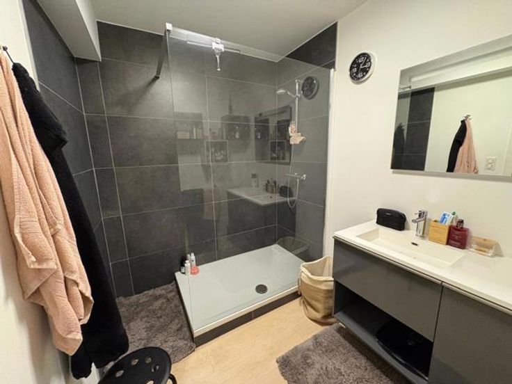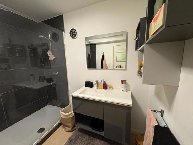 L'appartement est composé d'une chambre lumineuse de 11M², d'un séjour avec salon et cuisine équipée neuve de 30M², d'une salle de douche remise à neuf, d'un petit WC indépendant, d'une buanderie de 3M² et d'une cave de 4M². Le tout au rez de chaussée.