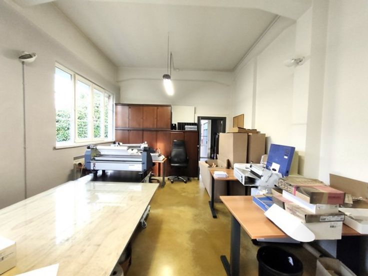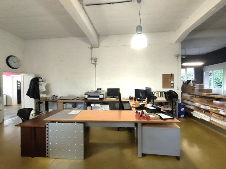 Maison communale d'Uccle | Dans un cadre exceptionnel et unique à Uccle, magnifique espace d'Atelier et bureaux totalisant 420 m² privatifs | Rue Victor Allard, au cœur d'un magnifique domaine verdoyant et agréable abritant plusieurs entreprises | L'espace est très cosy, bien équipé et de style industriel - très beaux châssis industriels et béton lissé au sol | L'espace dispose de 385 m² au rez réparti en 265 m² d'atelier/stockage et 120 m² de bureaux, salle de réunion, cuisines et réfectoire + sanitaires partagés ... 1 quai de déchargement palette, zone de livraison, 3.65 m de hauteur sous plafond, aérotherme et airco, grande puissance électrique (63A) -> ancienne imprimerie | Stock de 35 m² facilement accessible à l'entresol | Deux entrées dont une partagée avec une autre activité | Transports en commun et nombreux commerces tout proches (bus et tram) | LOYER: 4500€/mois hors parking, charges et taxes | Possibilité de louer 5 places de parking à 105 €/place/mois | Provision de 1.100 €/mois comprenant charges communes, chauffage (mazout), eau, précompte | Electricité en compteur privatif | Parking Vélo | 2 places de parking visiteur disponibles en commun | DISPONIBLE à partir du 01/07/2025| Contactez Hendrix Entreprise au 010/23.87.07 !