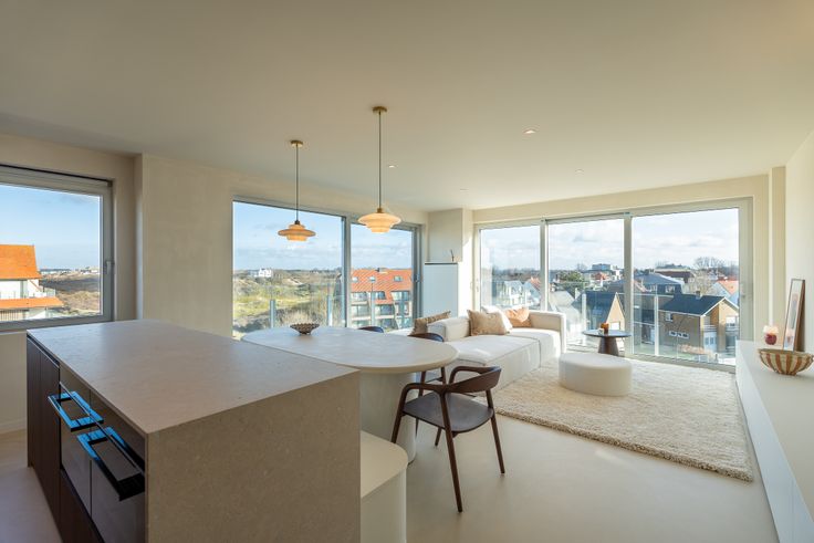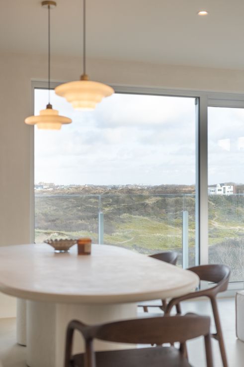 Het appartement bevindt zich op de vierde verdieping en heeft een adembenemend en uniek zicht op de duinen en de zee.