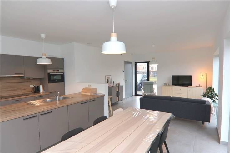 De ruimtes worden optimaal benut waarbij rekening gehouden wordt met een praktische indeling, lichtinval en comfort. Bij het betreden van de woning vinden we op het gelijkvloers een inkomhal, een gastentoilet, een leefruimte met ingerichte open keuken en een berging.