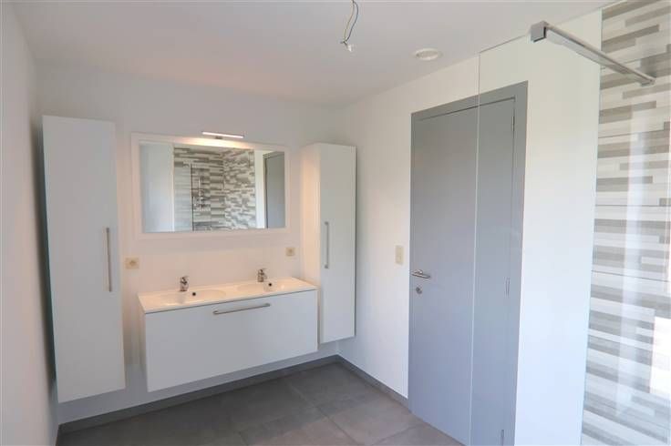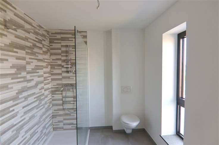 Hogerop vinden we een nachthal, 3 slaapkamers en een badkamer met inloopdouche en een 2de toilet.