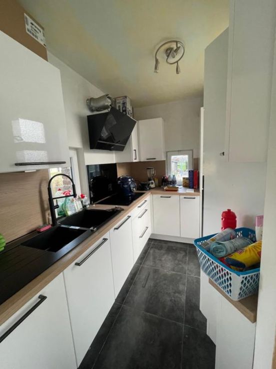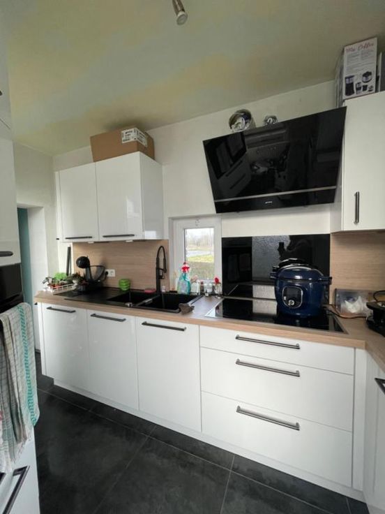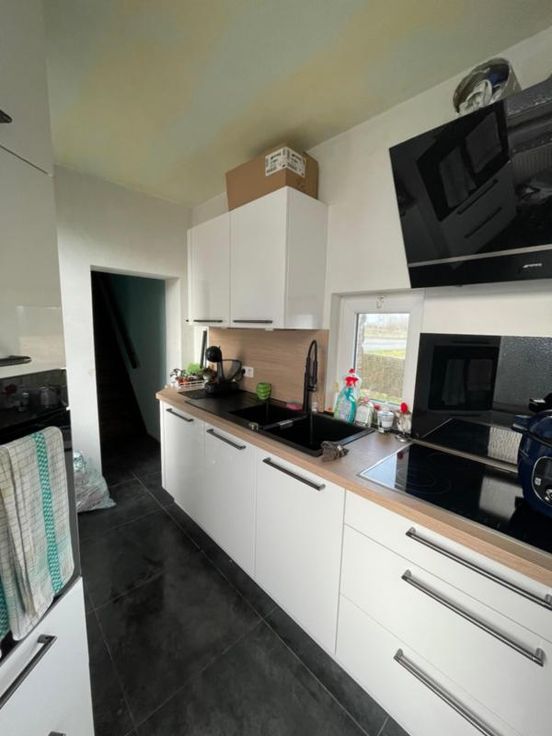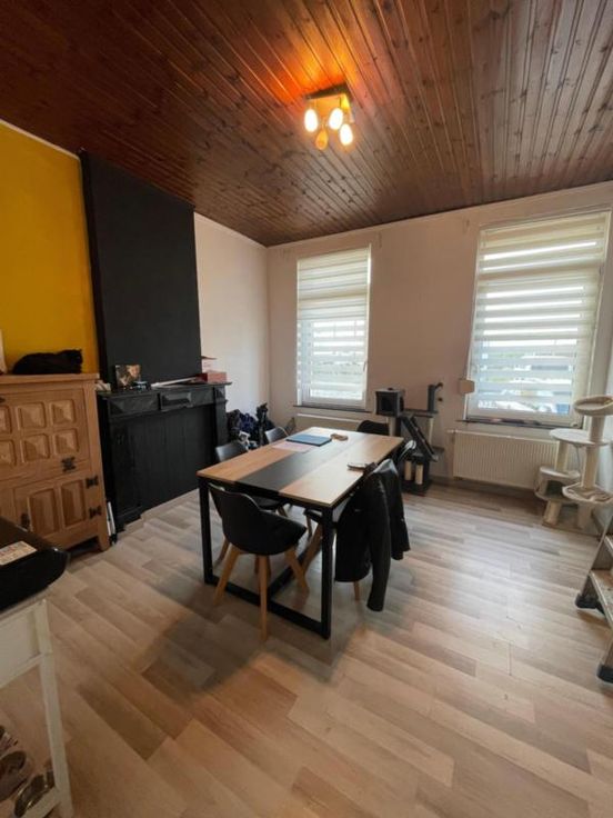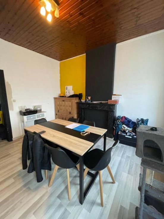 COMMUNE DE BRUGELETTE (5ème Division-ex-Attre) Rue de la fleur de Hainaut 5, 7941 Attre Bonne maison d’habitation avec jardin/terrain à bâtir, proche de la gare de Mévergnies-Attre, parking aisé. La maison se compose comme suit : - Au sous-sol : vastes caves donnant accès au jardin avec remise. - Au rez-de-chaussée : hall d’entrée desservant un salon, une salle à manger, une cuisine équipée (double évier, frigo, four, hotte, taque vitro céramique). - Au premier étage : hall de nuit desservant une salle de douche (douche, lavabo, wc), 2 chambres. - Au deuxième étage : un grenier aménageable (toiture neuve + isolée). - Parking aisé. - Idéalement située proche de la gare de Mévergnies-Attre. - Chauffage central gaz de ville. - Chaudière (2022) t à l’égout. - Double vitrage (sauf dans la cuisine). - Toiture refaite en 2022 + isolation. - Cuisine (Eggo 2022) Renseignements généraux : RC : 358€ PEB : / Contrôle de l’installation électrique : /
