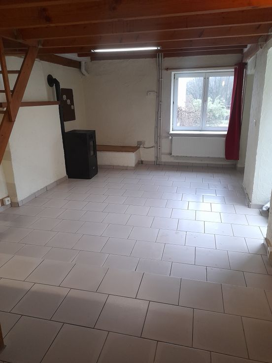Rustique. Situé au calme, à proximité autoroute Liège-Namur. Entre Huy, Waremme et Hannut. Living avec coin cuisine semi équipée. Chambre à l'étage avec coin douche et wc. Accès indépendant par la cour. Petits animaux calmes admis.