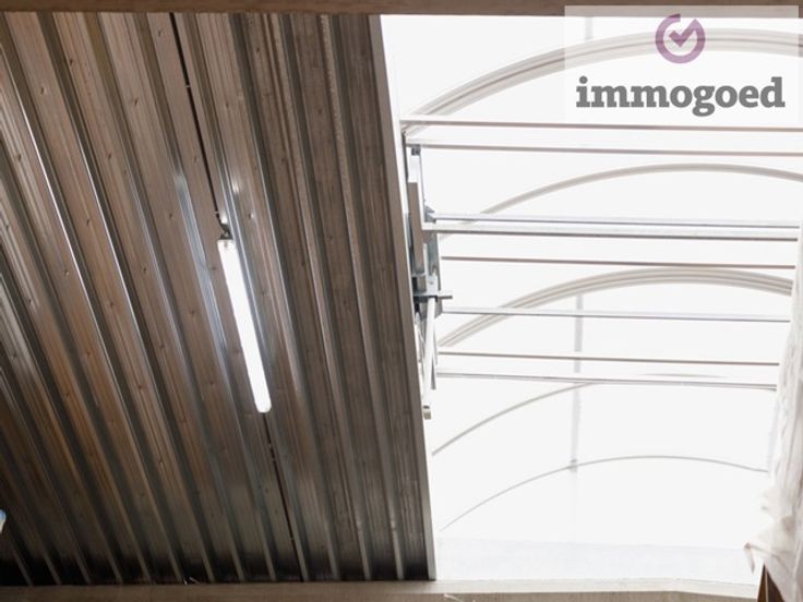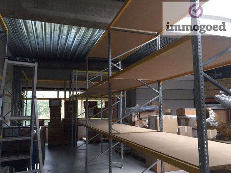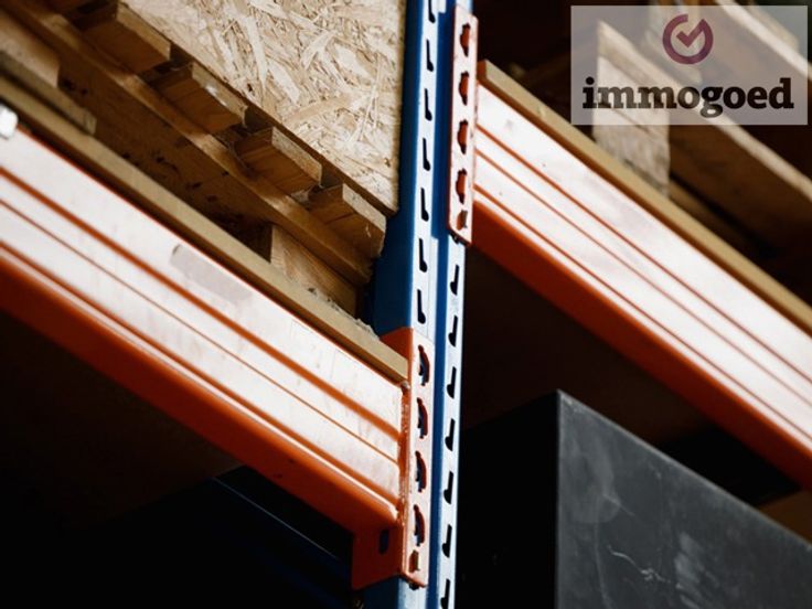 Beneden zijn er 177 m robuuste palletrekken en boven 139 m legborden, kunnen eventueel blijven staan.