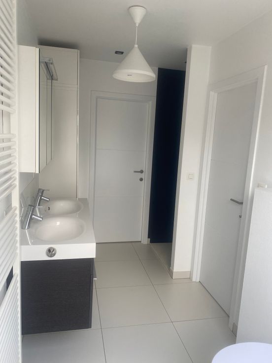 Dit bijzondere appartement heeft 2 slaapkamers en 1 walk-in closet en ligt op de hoek van een kleine residentie, op wandelafstand van winkels, apothekers, horecazaken en scholen, het ligt vlakbij de oprit van de E314 en op 5 min fietsen van het KRC-Genk stadion en Thor park. Het appartement is instapklaar met high-end afwerking en oog voor detail. Via de inkomhal kom je in de ruime living met veel lichtinval dankzij de grote schuiframen naar het eerste terras. Het terras ligt aan de voorzijde van de residentie en loopt door over de volledige zijgevel. In de leefruimte is er plaats voor een zithoek en een eethoek. De zithoek heeft een gezellige gashaard. De open keuken (SMEG) is volledig ingericht met alle modern comfort en heeft een natuurstenen werkblad. Op deze verdieping is er nog een ingerichte berging met aansluiting voor wasmachine en droogkast, een apart gastentoilet en een eerste slaapkamer. De tweede verdieping is bereikbaar via een mooie draaitrap. Hier zijn er de tweede slaapkamer met airconditioning, badkamer met douche en ligbad en een ingerichte dressing (walk-in closet). Het ruime zonnige dakterras op deze verdieping is ingesloten, wat een optimale privacy garandeert. In de kelderverdieping zijn er nog 2 autostaanplaatsen en 2 kelderbergingen. Voor de residentie is er extra parkeergelegenheid.
