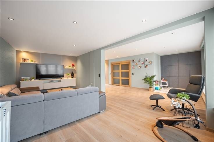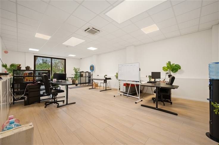 Deze woning heeft twee ingangen: een hoge garage-ingang voor kantoren met opslagruimte en een aparte ingang voor het woongedeelte met aanpalende bureelruimte. In het woongedeelte geniet u van een open leefruimte en maatkeuken, met grote zwarte ramen die uitkijken op een houten dakterras van tropisch hardhout, beschermd tegen inkijk. De eetkeuken biedt plaats aan zes personen en is uitgerust met een kookplaat, combi-oven, microgolf, 180 cm hoge koelkast en vaatwasser. Praktische extra's zijn ingemaakte kasten, rolluiken, vliegenramen, gordijnkasten en twee hangtoiletten. Op de tweede verdieping vindt u vier ruime kamers, waarvan één met bureel, en een badkamer met dubbel lavabomeubel, toilet en grote douchecabine. Verwarming gebeurt via eencondensatieketel met extra boiler. Het kantoorgedeelte achter de garage werd volledig vernieuwd in 2016 en beschikt over verwarming en koeling via drie airco-units. Grote zwarte schuiframen bieden uitzicht op een groene tuin met terras, deels overdekt door een pergola. Dit gedeelte bevat een vergaderruimte, keuken (2016) met koelkast, en veel inbouwkasten. Een geïsoleerde wand scheidt de 50m² magazijnruimte van de kantoorruimte, geschikt voor veertien werkplekken. Ideaal voor zelfstandigen of vrije beroepen. Het gelijkvloers heeft een huurwaarde van €2.200/maand. In de Koning Albertstraat is voldoende parkeergelegenheid. De opritten Mechelen-Noord (3 km) en Rumst (2,4 km) bieden vlotte verbindingen naar Brussel en Antwerpen.