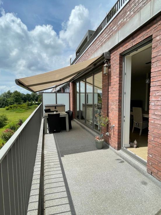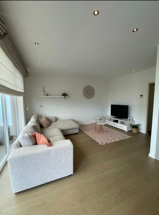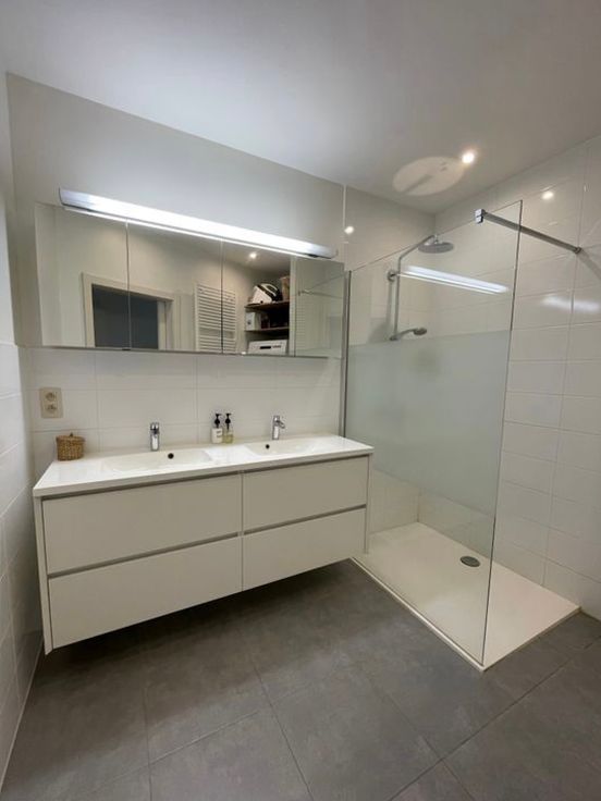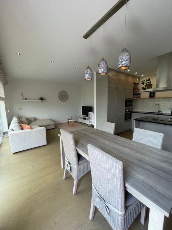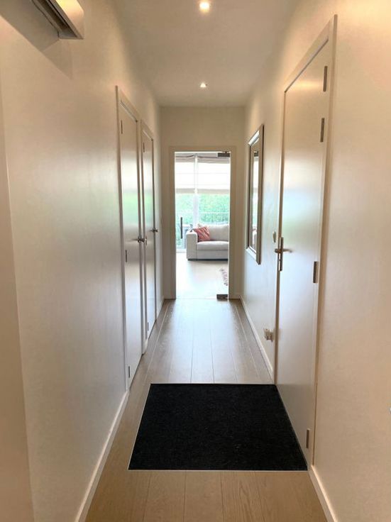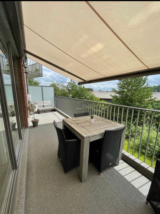 Indeling: u betreedt de inkomhal die toegang geeft tot de zeer lichtrijke living met open keuken + kookeiland, voorzien van vaatwasser, inductiekookplaat, dampkap, microgolf- en heteluchtoven, ijskast en diepvries. Living, hal en keuken zijn volledig voorzien van parketvloeren. Via de living betreedt u het ruime zonneterras voorzien van een elektrische zonneluifel. Via de hal komen we uit op de badkamer met tegelvloer voorzien van 2 lavabo’s, inloopdouche en aansluiting wasmachine. Verder is er de ruime slaapkamer op laminaat, berging en wc.