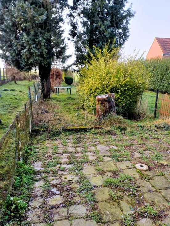 Sous-sol : Cave Rez-de-chaussée : Salon - Salle à manger - Cuisine équipée - Salle de bain (Douche, Lavabo simple, WC) Etage : Deux chambres Sous les combles : Grenier aménageable Dépendances : Cour - Jardin Commodités : Egout - Eau de ville - Gaz de ville - Electricité - Téléphone - Télédistribution - Châssis en PVC - Double vitrage - Chauffage central - Chaudière au gaz Parcelle non soumise à des obligations au regard du Décret Sol