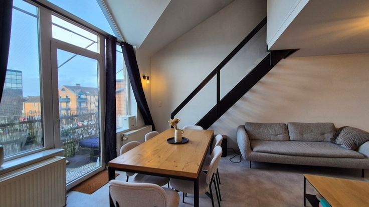 Appartement se composant d’un hall d’entrée, d’une buanderie avec coin chaufferie, un séjour très lumineux ouvert sur la cuisine équipée de matériaux de qualités, une salle d’eau avec douche à l’italienne, meuble lavabo simple vasque, wc, sèche serviette, 2 chambres et une 3ème chambre en mezzanine. Une grande cave de +/- 12m² et un emplacement de parking sécurisé dans la résidence.
