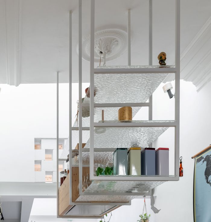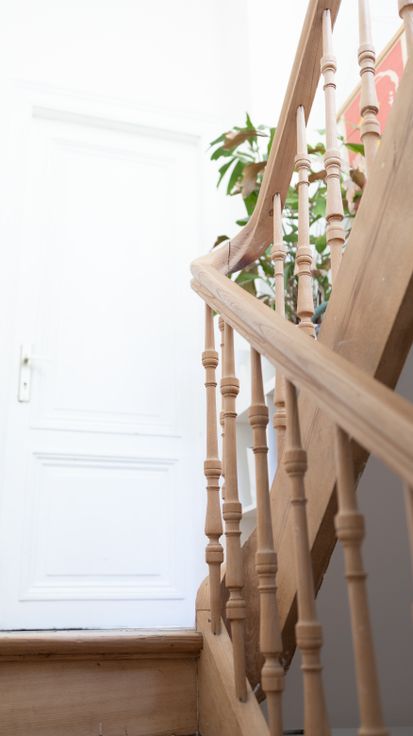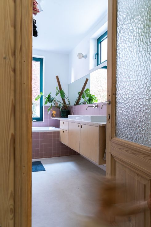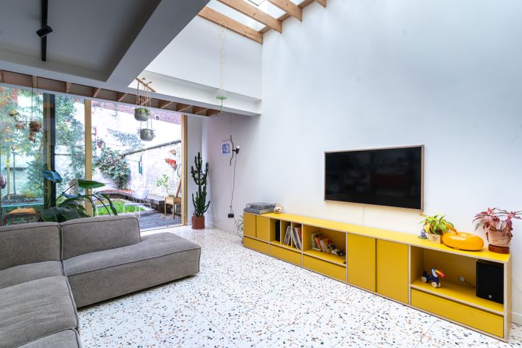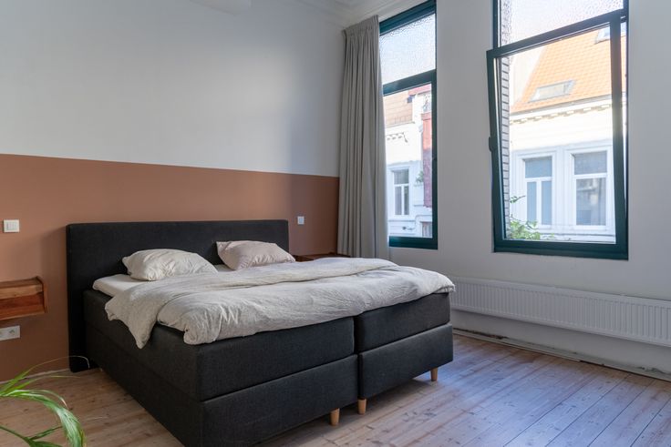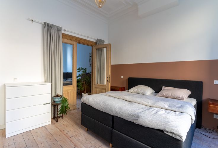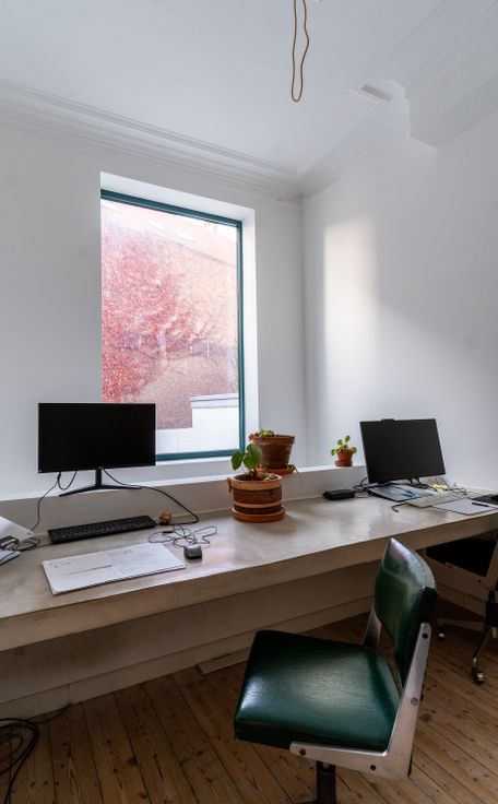 De living met terrazzo vloer ligt aan de rustige stadstuin waar je dankzij de driedelige schuifraam ook binnen buiten kan zitten. Dankzij de vloerverwarming is het hier zalig vertoeven. In de vide bevindt zich de bureau met zicht op de groene muur, die in de herfst mooi rood kleurt. Op de tussenverdieping ligt de badkamer met op maat gemaakt meubel, toilet, douche en ruim bad. Allemaal afgewerkt met mat roze tegels. De master bedroom bevindt zich op de eerste verdieping. Op het tweede zijn er nog twee heel ruime slaapkamers waarvan eentje met leuke mezzanine. Op alle slaapkamers werden de originele vloeren bewaard en opgeknapt. Andere troeven: regenwaterput, zonnepanelen, thuisbatterij, dubbele beglazing, hoge plafonds en mooie mouluren.