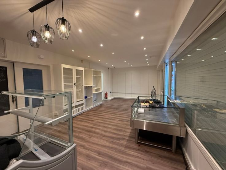 Moderne winkelruimte van 32,65 m², met een aangrenzende multifunctionele ruimte van 19,40 m², perfect voor uitbreiding van de winkel of als bureauruimte, daarnaast een praktische keuken van 12,52 m², voorzien van kookplaat, dampkap, vaatwas, oven, aansluitend bijgebouw van 44,95 m², ideaal voor opslag met een aanpalende garage van 12 m².