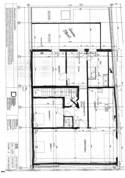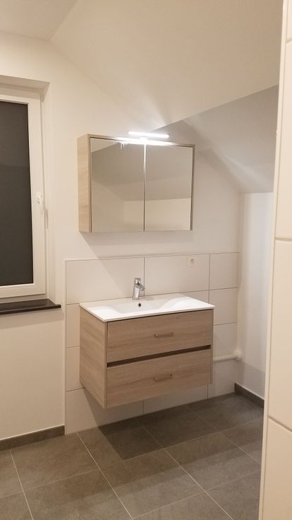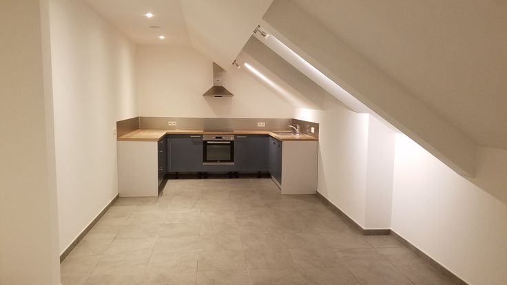 Grand appartement 2 chambres pour 3 personnes avec terrasse situé au 2 étage (mansarde haute) d'un immeuble de 5 logements construit en 2021 dans le centre de Fosses.