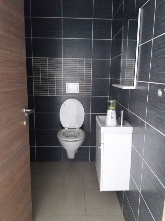 Verder aan de linkerkant bevindt zich een ruim toilet.