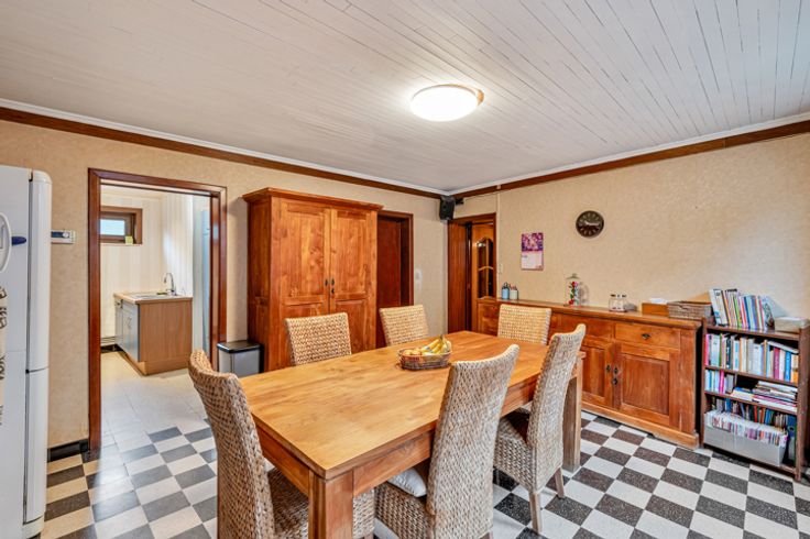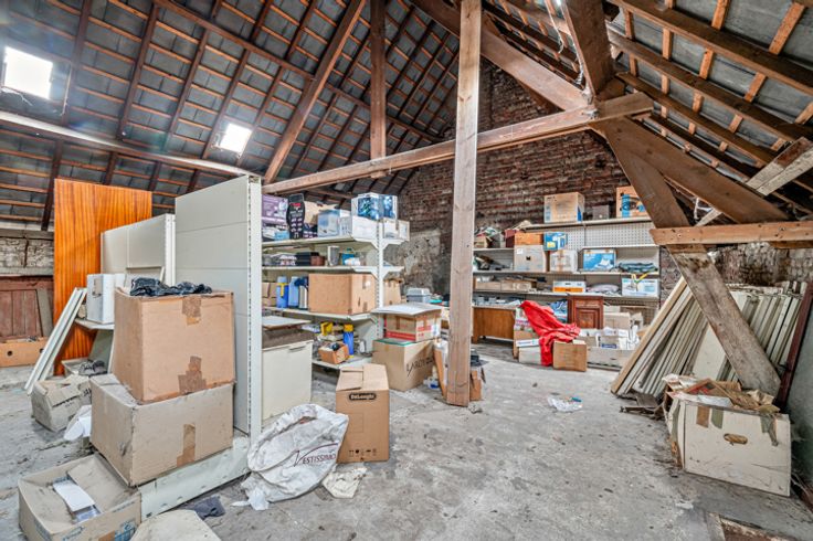 Een van de grote troeven van dit pand zijn de bijgebouwen, die samen 200 m² extra ruimte bieden. Deze kunnen perfect worden ingericht als atelier, praktijkruimte, bureauruimtes of andere professionele activiteiten. Bovendien beschikt het pand over twee garages, ideaal voor veilig parkeren.