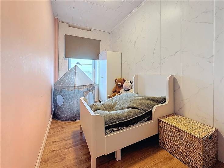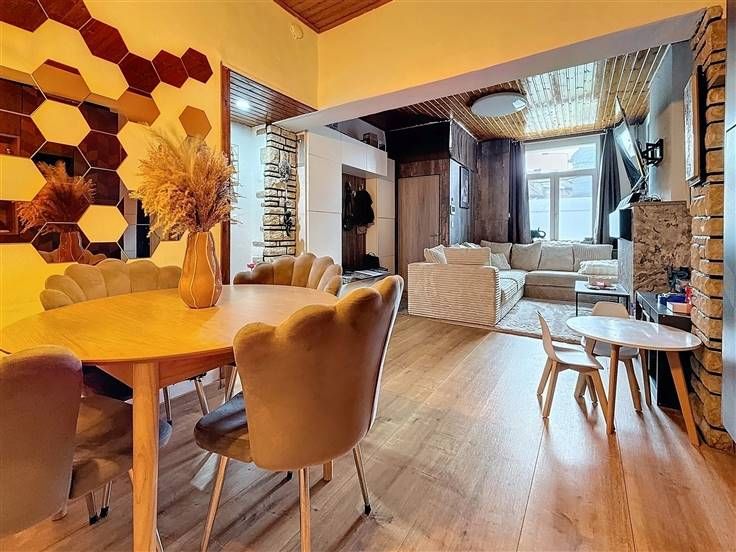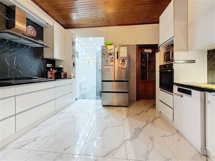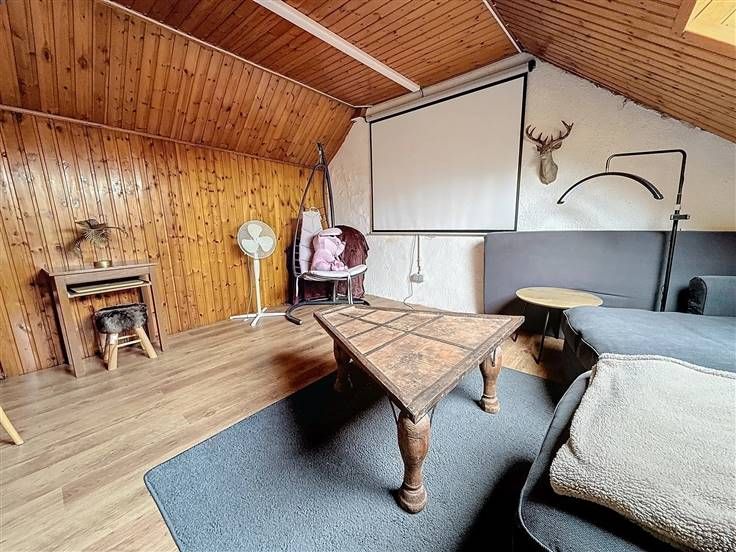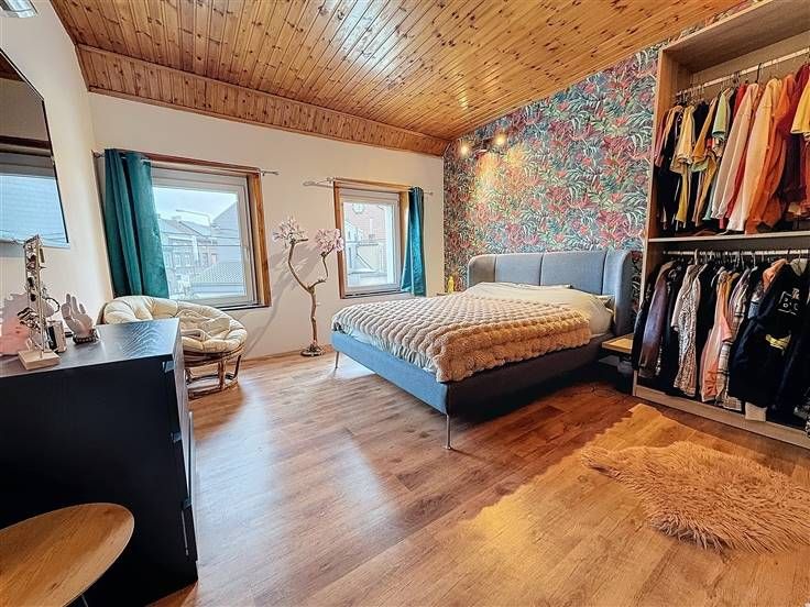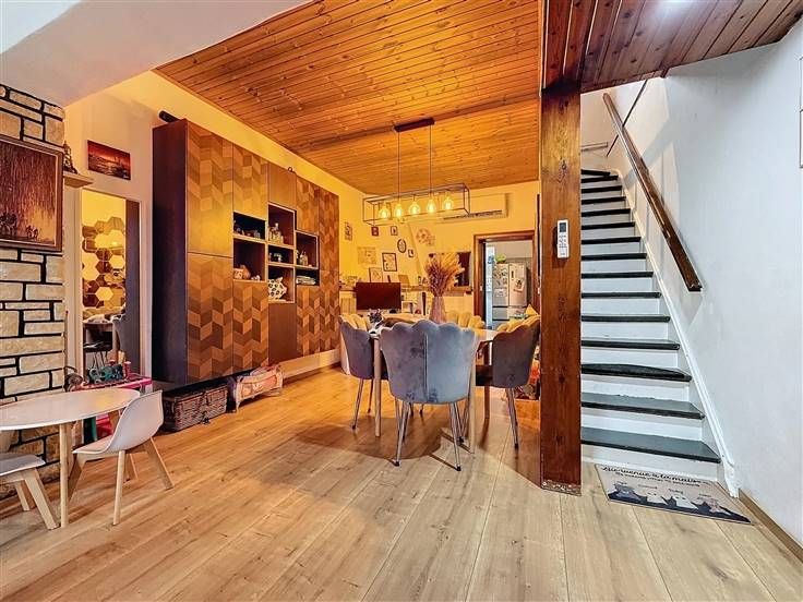 Sous-sol: 3 caves dont la chaufferie. Rez: hall d'entrée, salon, salle à manger, cuisine super équipée, salle de douche avec wc, buanderie, véranda, remise et jardin. Etage 1 : hall de nuit, 2 chambres. Etage 2 : Grenier aménagé en chambre supplémentaire. Commodités: Châssis DV en PVC (2023), pompe à chaleur (2024), 17 panneaux photovoltaiques (2023), parkings privatifs à l'avant. PEB B - 166 kwh/m²/an - CU: 20250130001718 - Electricité conforme jusque 2048. Prix: Faire offre à partir de 230.000 € (sous réserve d'acceptation par les propriétaires).