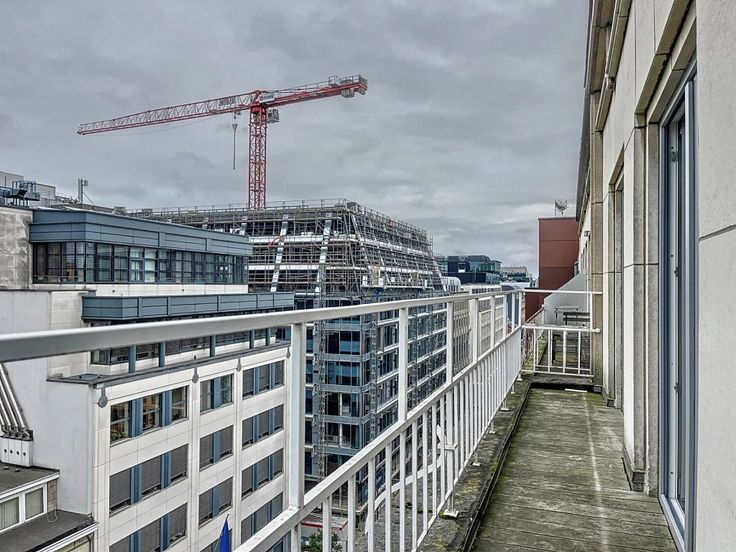 De ruimte heeft een balkon over de hele lengte van de voorgevel.