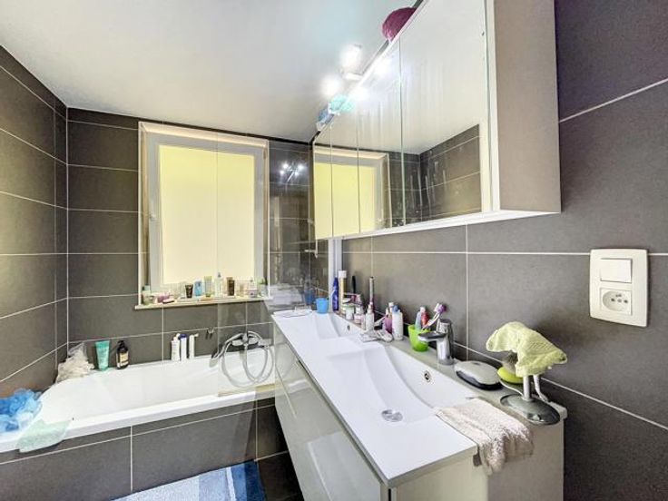 Ne manquez pas ce bel appartement, en rez-de-chaussée, situé dans un quartier très calme à 5 minutes du centre d'Aywaille ! Il se compose d'un hall d'entrée avec une toilette, d'un grand séjour de 35m² avec accès à la terrasse, d'une cuisine équipée (électros SIEMENS), d'un hall de distribution donnant accès aux deux chambres, à la salle de bains et à la buanderie. Cour privative de 41 m2. Emplacement de parking extérieur et cave ! PEB classe B ! Chauffage par le sol via pompe à chaleur, châssis DV PVC, électricité conforme. L'appartement est actuellement loué 1.000 euros par mois + 60,87 euros prov.charges. N'hésitez pas à nous contacter au 04/222.21.21 pour plus d'informations ou à consulter notre site www.cdconsult.be