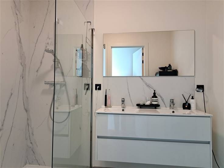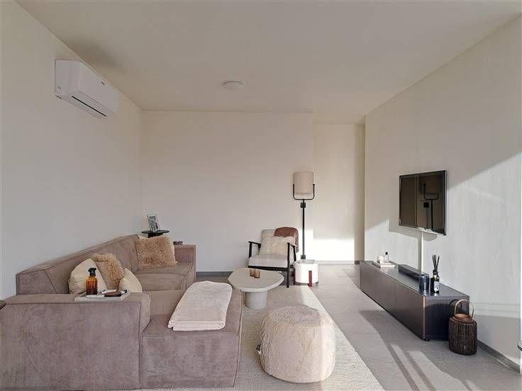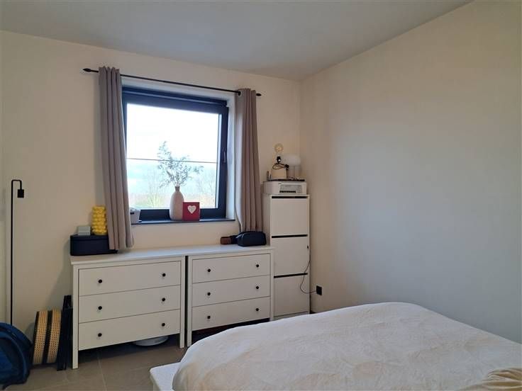 Energiezuinig recent appartement zonder algemene onkosten met airco, autostaanplaats en 7 zonnepanelen. Het gaat hier om een kleinschalig project op een topligging met aandacht voor energiezuinigheid. Het appartement is gelegen op de tweede verdieping. Je geniet optimaal van natuurlijke lichtinval. Op vlak van indeling onderscheiden we het volgende: Inkomhal, toilet, L-vormige leefruimte met open keuken, berging, badkamer, 2 slaapkamers De keuken is voorzien van een eiland met spoelbak, ingebouwde frigo, inbouwoven, kookplaat, dampkap en vaatwasapparaat. De badkamer is voorzien van een inloopdouche en een dubbele lavabo. De verwarming is op gas. Tevens werd het appartement voorzien van 7 zonnepanelen. Ook beschik je over een airco. Achteraan het gebouw is er een private autostaanplaats voorzien. Algemene informatie: Huurprijs: 850 euro algemene onkosten: niet van toepassing Vrij vanaf: 1 mei 2025 (mogelijk vanaf maart in overleg met huidige huurder) EPC-attest: 25 kWh/m² Huisdieren: niet toegelaten 7 zonnepanelen: 2765 Wp