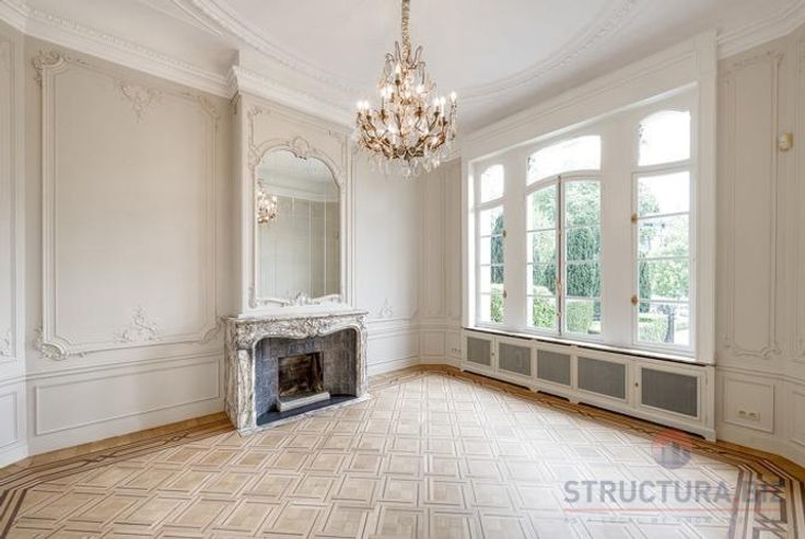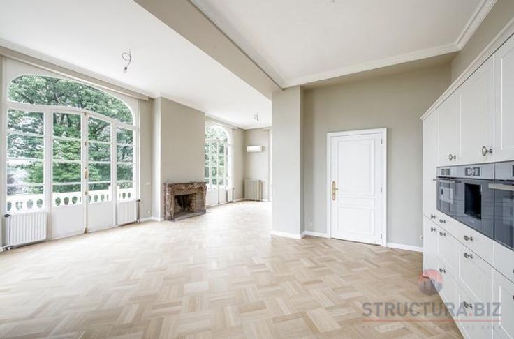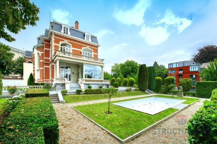 Uitzonderlijk prestigevastgoed te huur in een van de beste woonwijken in het oosten van Brussel. Het bestaat uit een kelderverdieping, gelijkvloers en 2 bovenverdiepingen met een totale oppervlakte van +/- 950 m²: grote vergader- en receptieruimtes, doucheruimtes, sanitair, 2 keukens, 1 overdekte parking en verschillende buitenparkings. Prachtige tuinen in het hart van een privépark van 4.000 m².