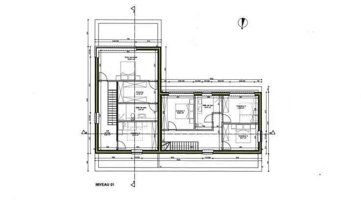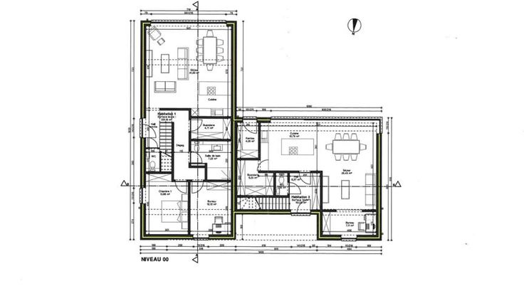 - Logement 2 (droite) : situé sur la largeur de la construction.