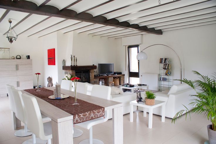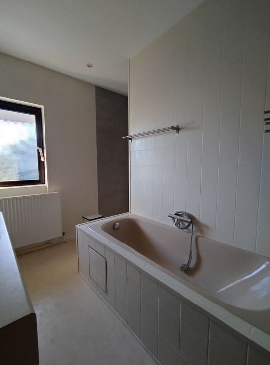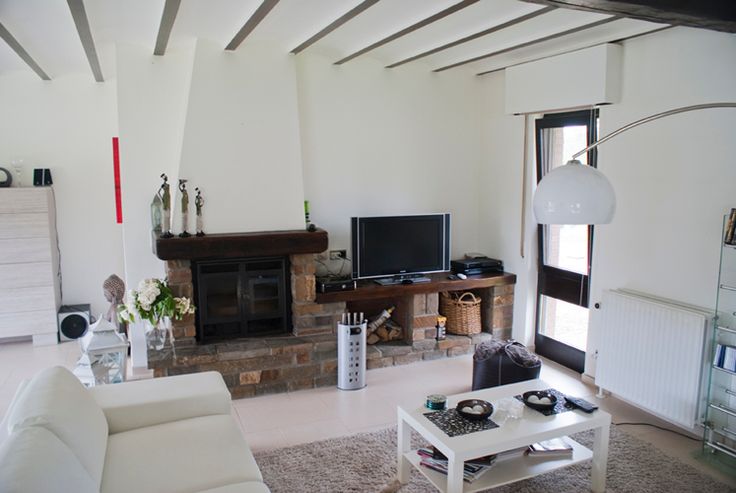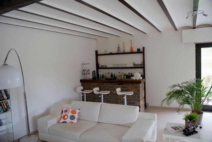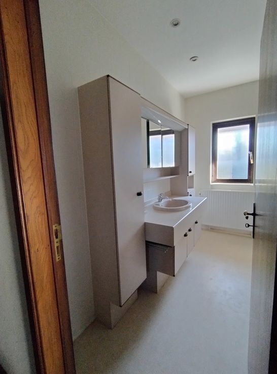 Vaste salon salle à manger (68m2) avec cassette (feu de bois), cuisine équipée avec nombreuses armoires de rangement, salle de bain avec douche et baignoire, WC isolé, vestiaire, buanderie, deux chambres (14 et 7,5 m2) dont la plus vaste est équipée de placards, bureau avec nombreux placards, trois caves (chaudière, cave pour machine à lessiver avec évier). Deux terrasses: une à l'avant 40 m2 et une à côté de la cuisine.