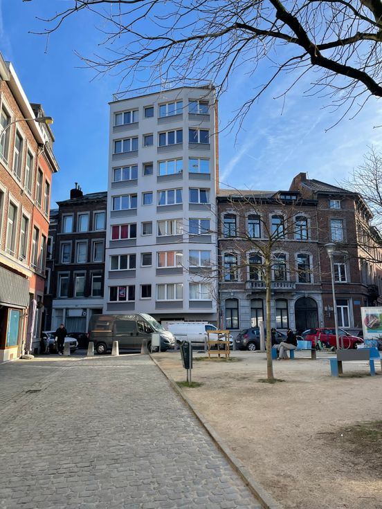 Situé sur la Place des Béguinages, dans un immeuble donnant sur une petite place tranquille, en face de la piscine Jonfosse. À proximité immédiate de toutes les commodités (supermarché, laverie, bus, tram, gare, écolés & universités, centre de Liège, jardin botanique,...)