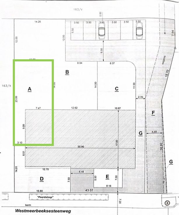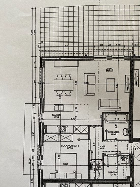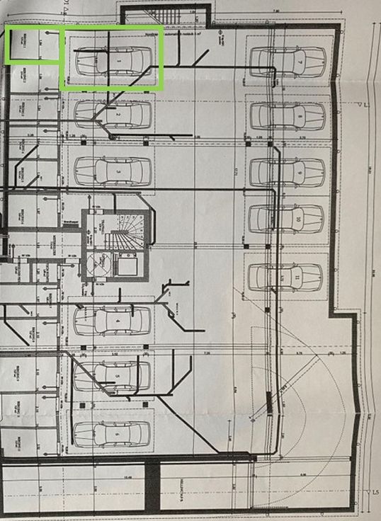 In de ondergrondse garage bevindt zich uw private parkeerplaats en een eerste berging (5,7m2) om materiaal of fietsen weg te stallen.