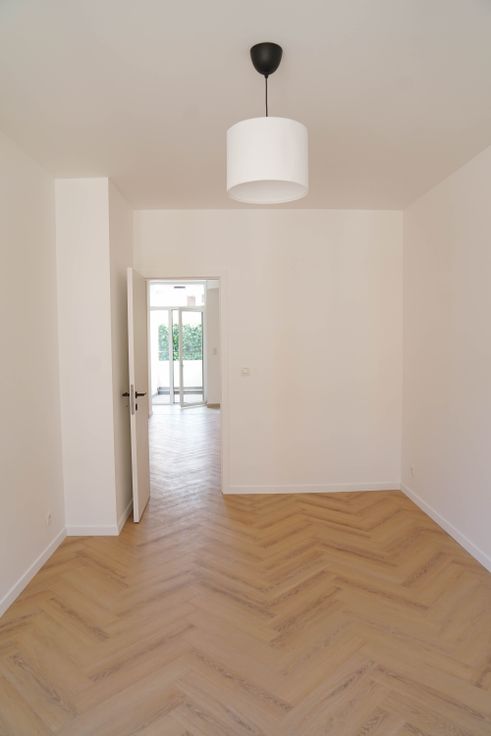 Celui-ci se compose de deux grandes chambres (+- 15m² et 12m²), d'un spacieux séjour de +- 25m² et d'une salle douche à l'italienne haut standing, une toilette séparée pour plus de confort ainsi que deux grandes caves, idéales pour du rangement.