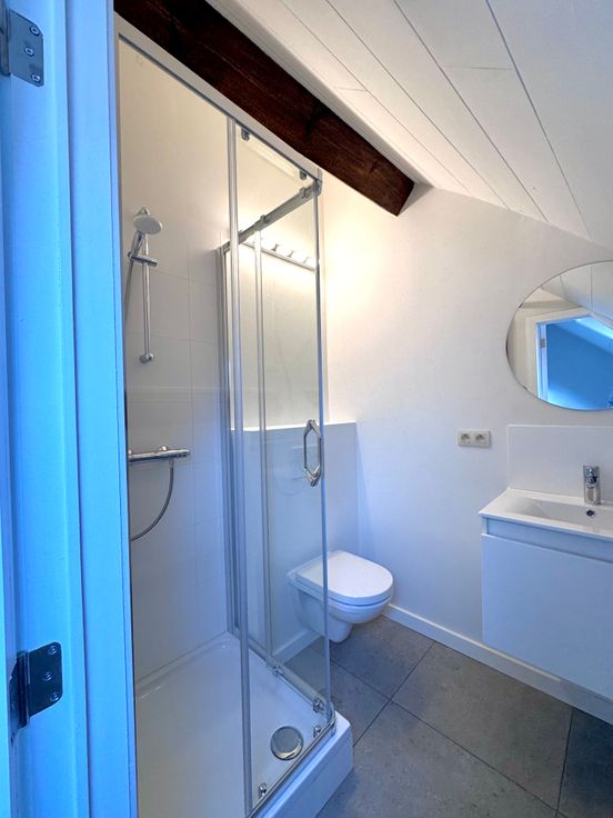 Indeling: Gelijkvloers: Inkomhal, leefruimte met eetgedeelte en keuken, toegang tot een gezellig terras (5 m²). Eerste verdieping: Traphal, ruime wc met wastafel, twee slaapkamers en een douchekamer met wastafel. Tweede verdieping: Grote zolderkamer, tweede douchekamer met wastafel en wc. Extra: De woning beschikt over een kelder, ideaal voor extra opslagruimte.