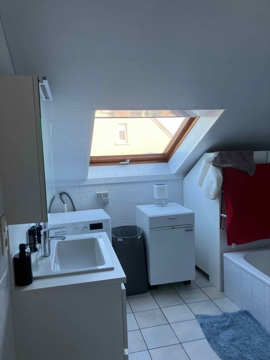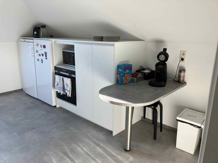 Vernieuwde keuken met Siemens toestellen, appartement volledig geverfd in modern wit, nieuwe binnendeuren, nieuwe ecologische warmtepompen van Daikin (airco en verwarming).