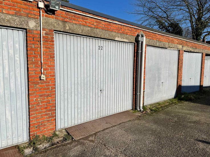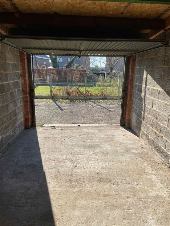 Afgesloten Garagebox met kantelpoort. Oppervlakte 16,6m2 Poort breedte: 2,5m Géén electriciteit.