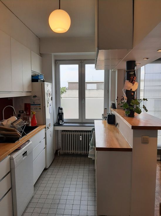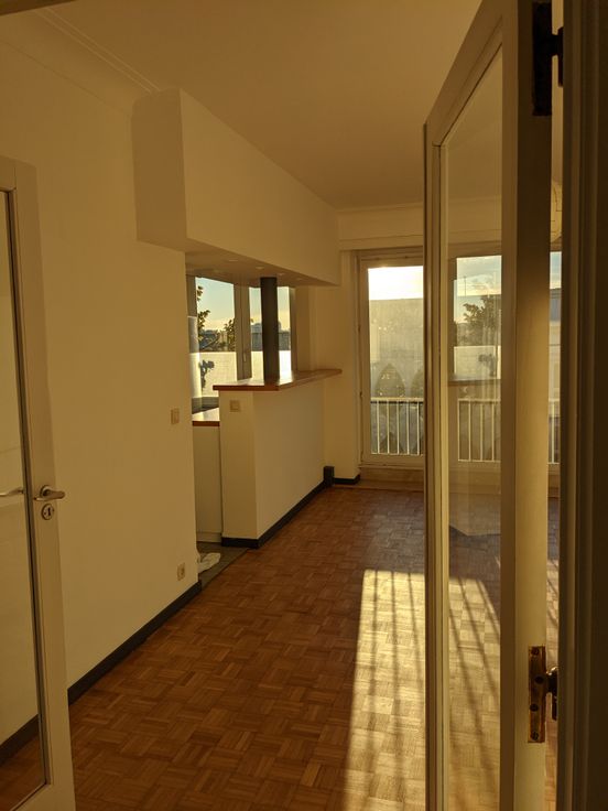 Agréable et lumineux appartement 2 chambres de 80 m carrés situé au 4e étage avec ascenseur, à 500m de la place Jourdan, 750m de Schuman. Cuisine super-équipée (frigo, congélateur, four) ouverte sur salon et salle à manger. Deux grandes chambres donnant sur l’arrière : chambre 1 avec balcon de 3,25 m carrés - chambre 2 avec une armoire encastrée. Salle de douche avec évier et machine à laver. Deux débarras/espaces de rangement d’un mètre carré chacun. Cave. Parquet. Fraîchement repeint.
