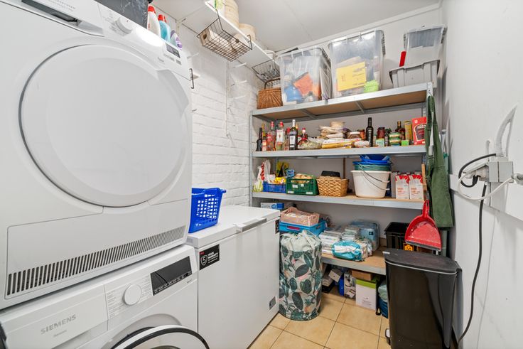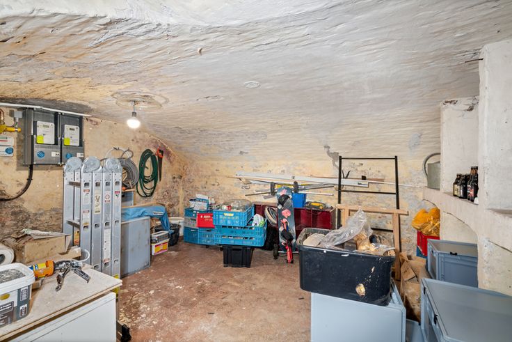 Gelijkvloers 80m² : winkel/kantoorruimte, berging. De inpandige garage biedt voldoende ruimte voor een fietsenberging en een wagen. De handelsruimte zelf biedt diverse mogelijkheden zoals een gezellige koffiebar, naaiatelier, kantoor ... . Er is voldoende opslagruimte aanwezig door de garage, berging en de kelder(16m²).