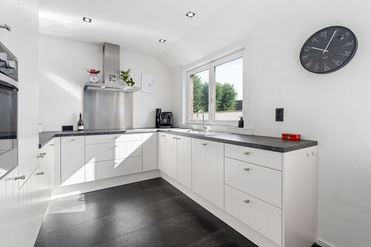 1ste verdiep 80m² : inkomhal met gastentoilet, lichtrijke leefruimte met eet- en zitgedeelte, hedendaagse ingerichte keuken en praktische bergruimte.