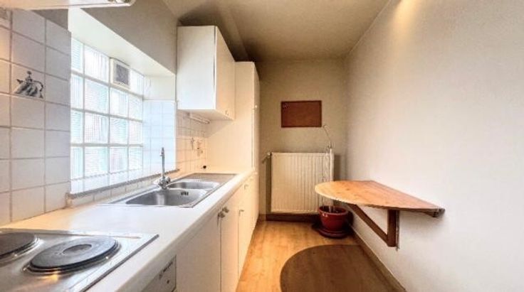 Gezellig en licht appartement, 2 slaapkamers, zuidelijk terras met vergezicht, lift + garage nabij het Vrijthof, 3de verdieping van een kleine residentie met rustige bewoners. Goed onderhouden en energiezuinig (EPC B).