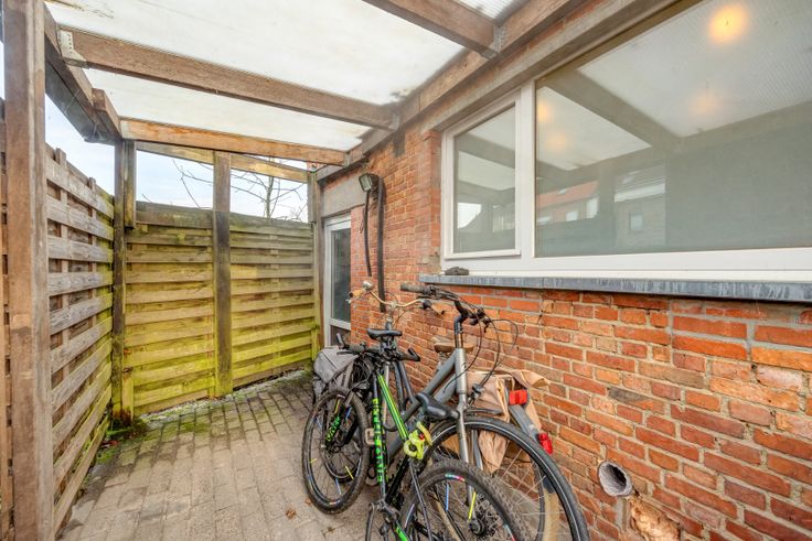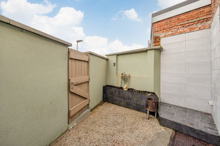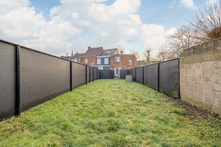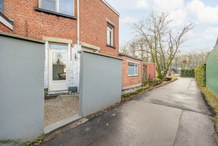 Naast de woning ruimte om fietsen en vuilnisbakken weg te zetten, de ruime tuin bevindt zich achteraan en is onderbroken met een servitude wegenis.