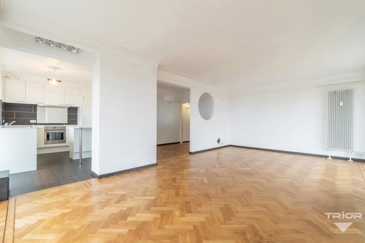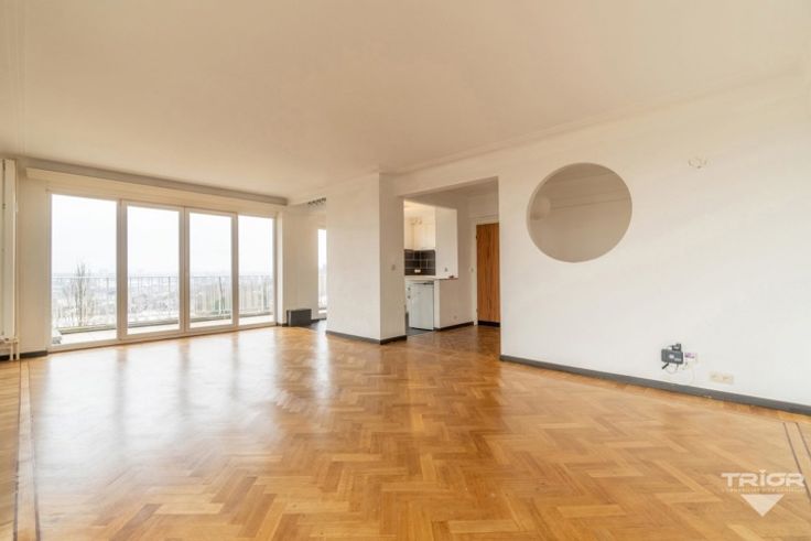 TRIOR Louise vous propose : idéalement situé dans le haut de Forest/Uccle, venez découvrir ce magnifique appartement de 100 m² en parfait état, 2 chambres, garage. Situé au 8ᵉ étage d'un immeuble avec ascenseur, il allie luminosité et vue panoramique sans vis-à-vis. Il se compose comme suit : hall d'entrée, living de ± 30 m² avec parquet en chêne et terrasses sur deux côtés, cuisine américaine équipée, hall de nuit, 2 chambres de 12 m² et 15 m², dont une avec terrasse, une salle de bain et un WC séparé. Une cave et un garage (box fermé) complètent le tout. DIVERS : PEB : D - Provision de charges : 200 €/mois (communs, eau et chauffage). Libre immédiatement. Voisinage respectueux et communs bien tenus. Une visite? Appelez-nous ! (Les visites ne peuvent être planifiées que par téléphone). Descriptif complet sur www.TRIOR.be.