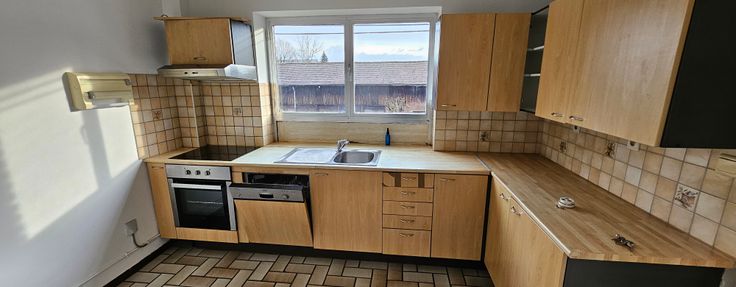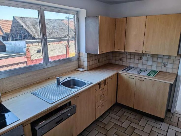 Grand living, cuisine semi équipée (Taque vitro, Hotte, Four, LV)