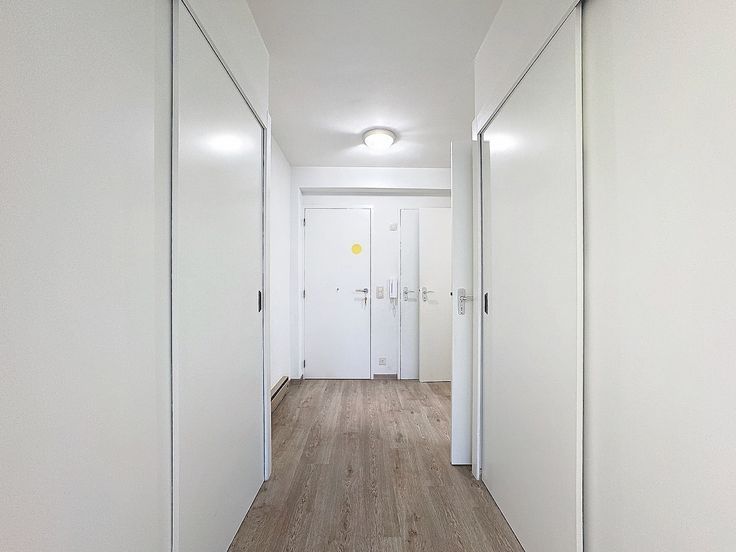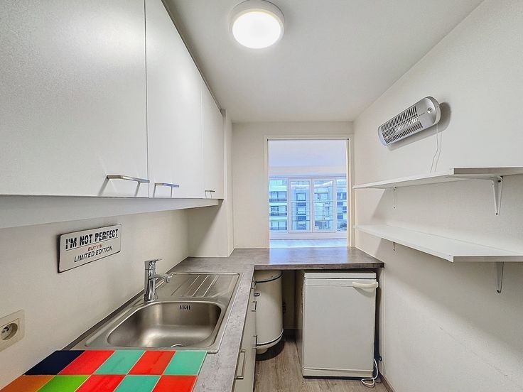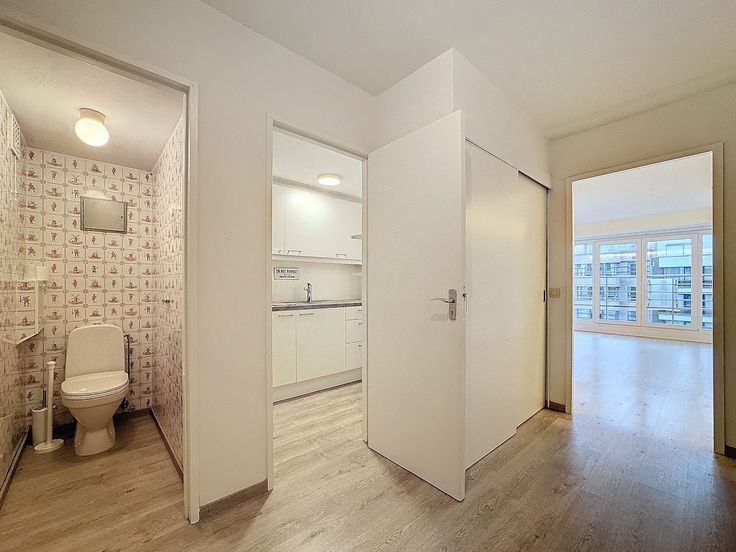 De studio beschikt over een ruime leefruimte met grote zuidgerichte ramen die zorgen voor een aangename lichtinval en een mooi uitzicht op de omgeving. De keuken met doorgeef is volledig uitgerust en praktisch ingericht. De badkamer is voldoende ruim en is voorzien van een ligbad en lavabo. Er is een apart toilet in de hall. Verder is de hall ingericht met twee ingemaakte kasten. Verwarmen gebeurt in dit gebouw elektrisch. Tot slot is er een mooie gemeenschappelijke fietsenstalling op het gelijkvloers.