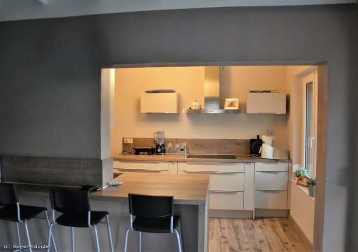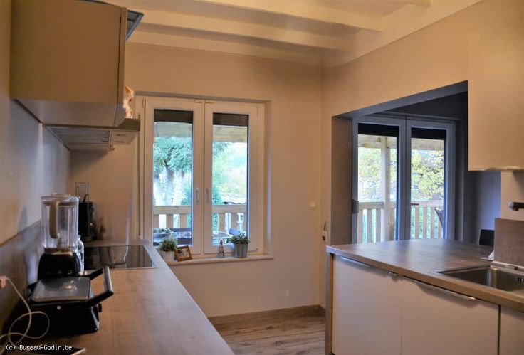 Concernant l'intérieur, la maison dispose d'un petit hall d'entrée doté d'un vestiaire, ouvert directement sur la pièce de vie principale (salon et salle à manger). La cuisine est équipée d'une taque vitro., d'un lave-vaisselle, four à chaleur tournante et machine à café : tous,intégrés.