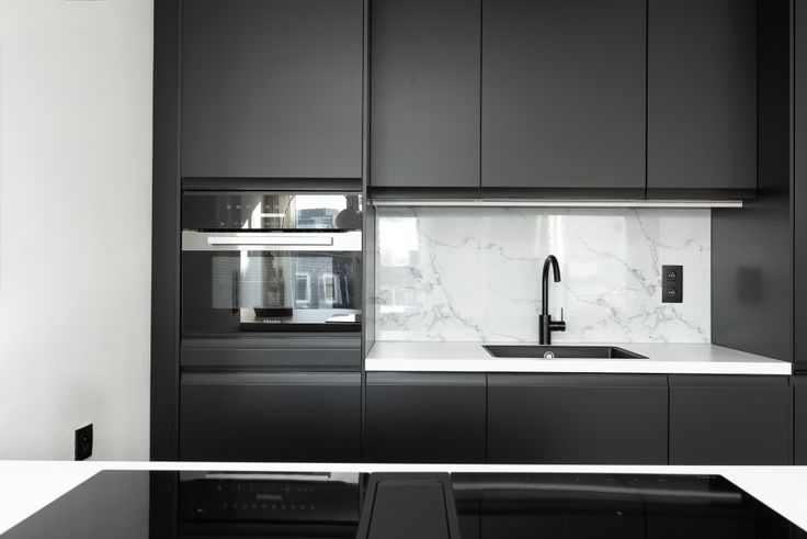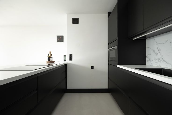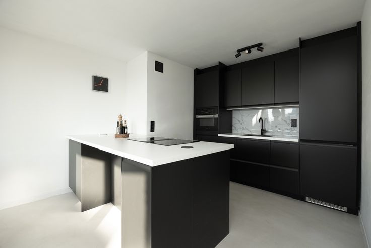 ✅ Moderne Open Leefruimte: Een lichte en ruime woonruimte met stijlvolle zwarte keukenmeubels en hoogwaardige inbouwtoestellen.