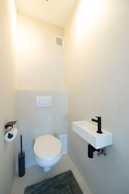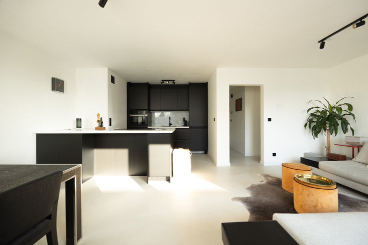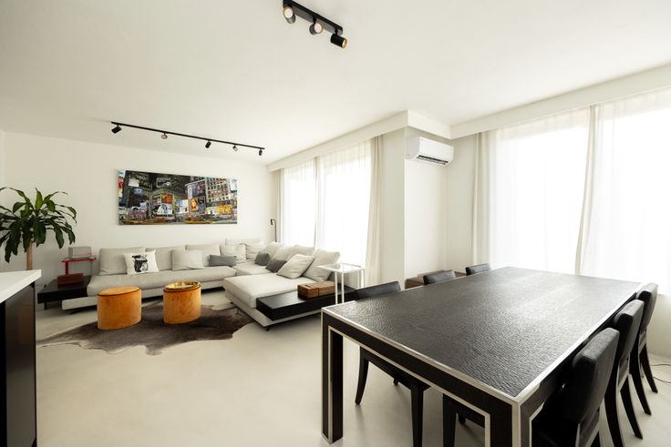 ✅ Minimalistische Esthetiek: Het hele appartement straalt een minimalistische stijl uit met een verfijnd kleurenpalet, Mortex-vloeren, op maat gemaakte gordijnen en designverlichting.