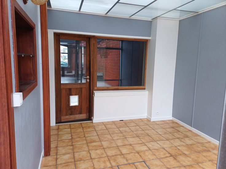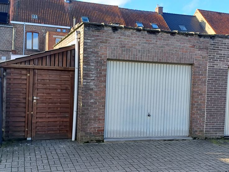 Inkom met toilet en trap. Leefruimte met aansluitende keuken. Achteraan veranda met terras die via het binnen tuintje toegang geeft tot de garage/fietsberging. Wasberging en kleine stockageruimte naast de veranda. Tussenverdiep met badkamer en toilet.